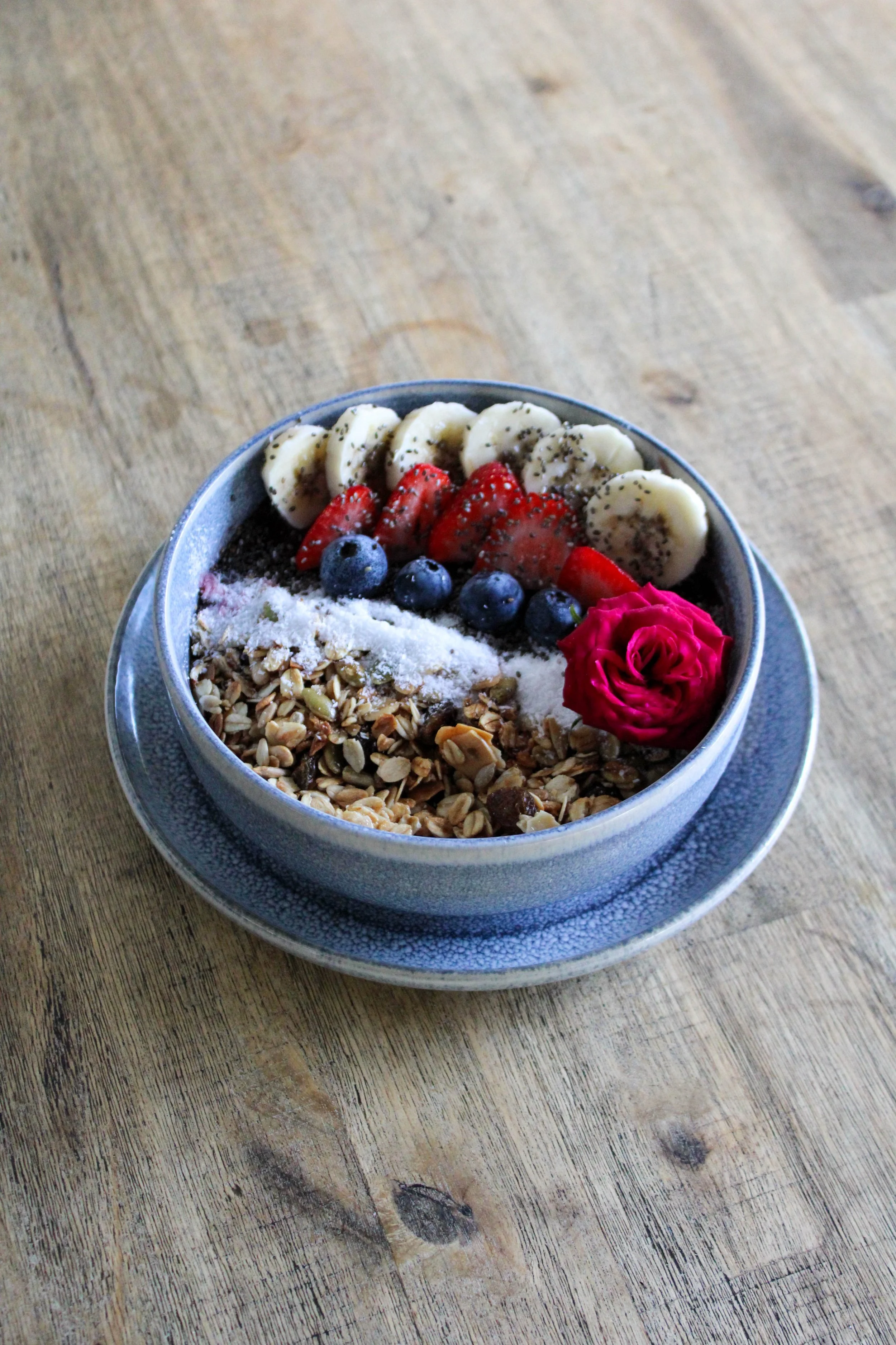 SEASONAL FRUIT, TOASTED MUESLI, CHIA SEEDS, SHREDDED COCONUT AND HONEY.